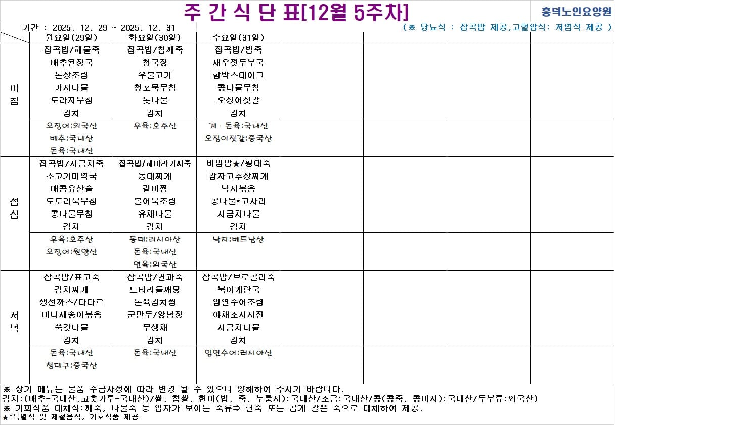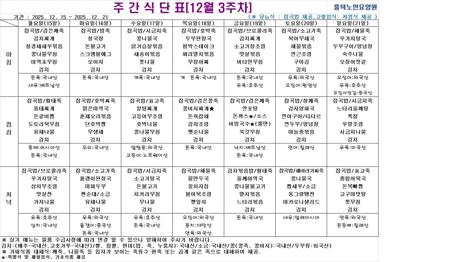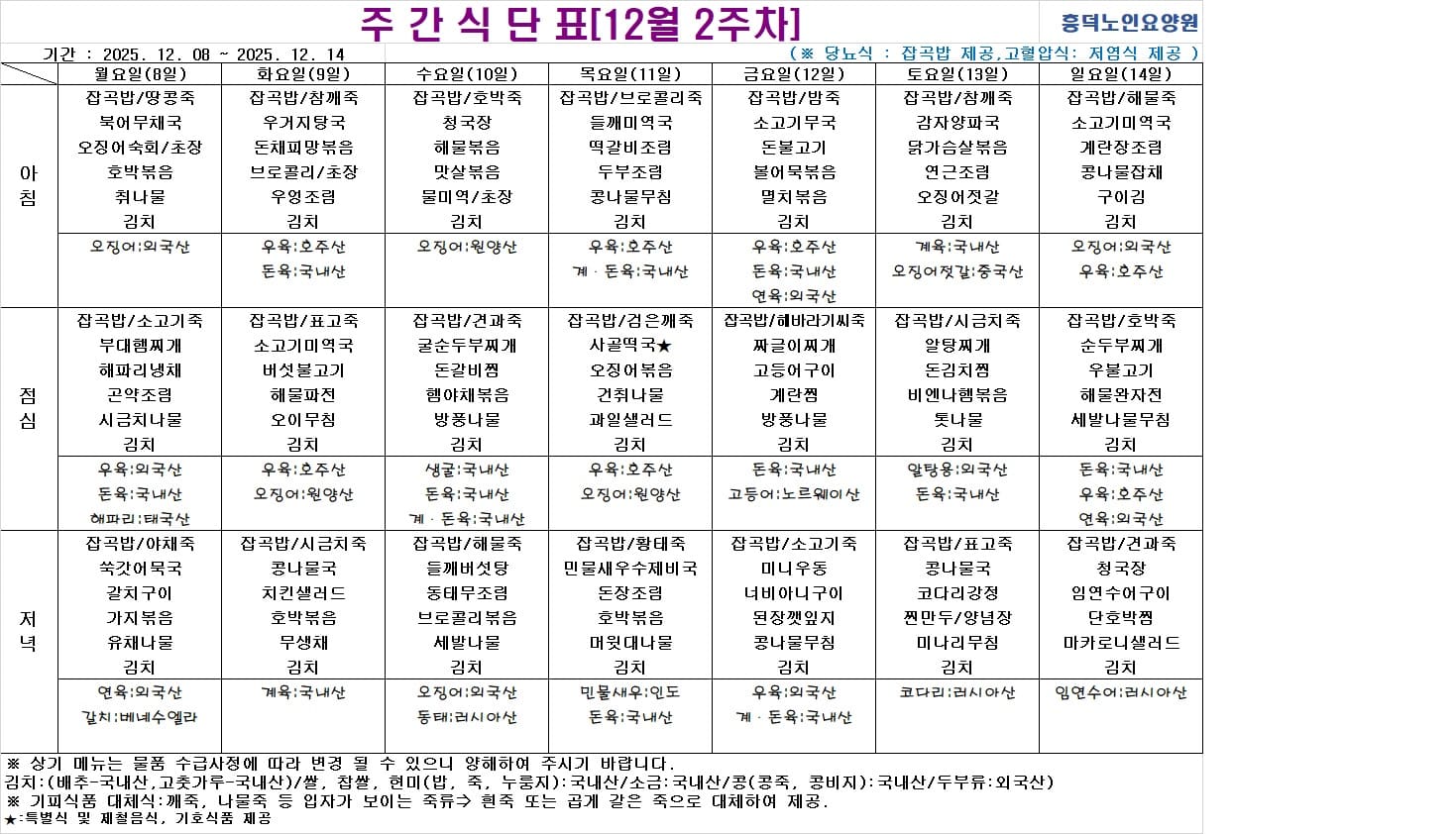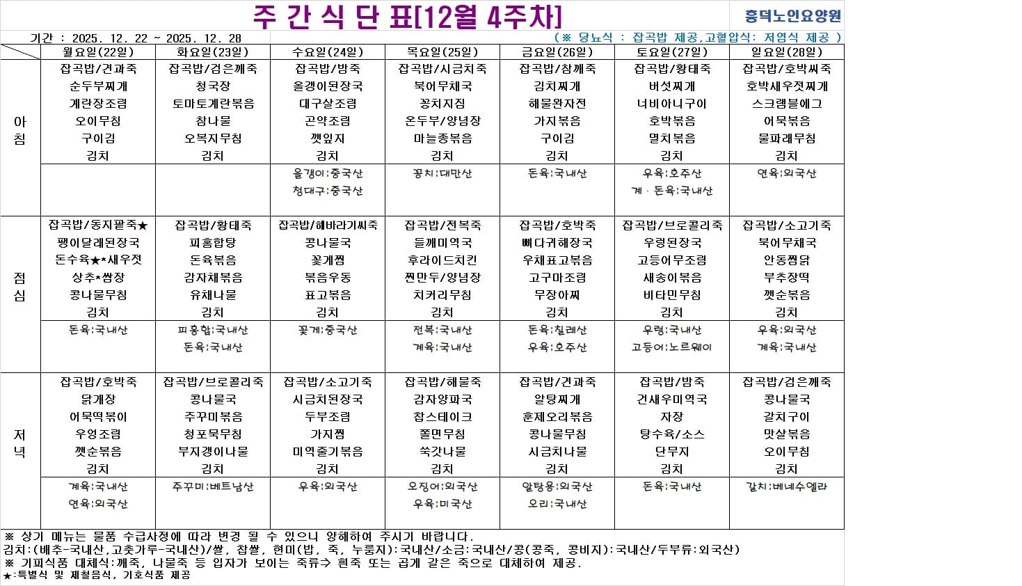2025³â 12¿ù ½Ä´ÜÇ¥ ÀÔ´Ï´Ù.