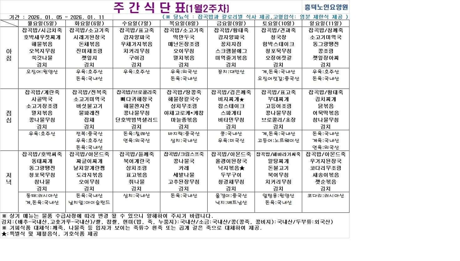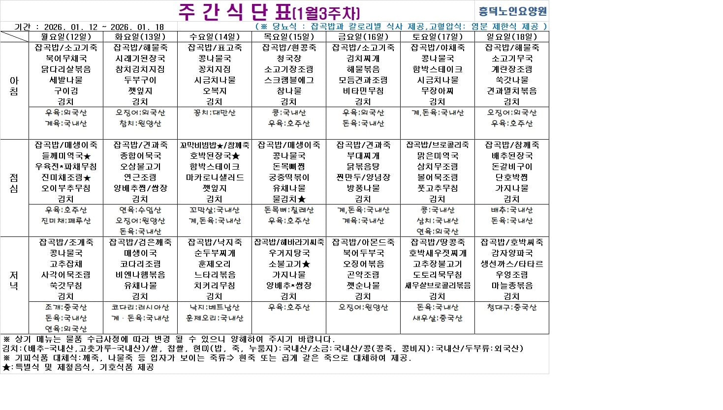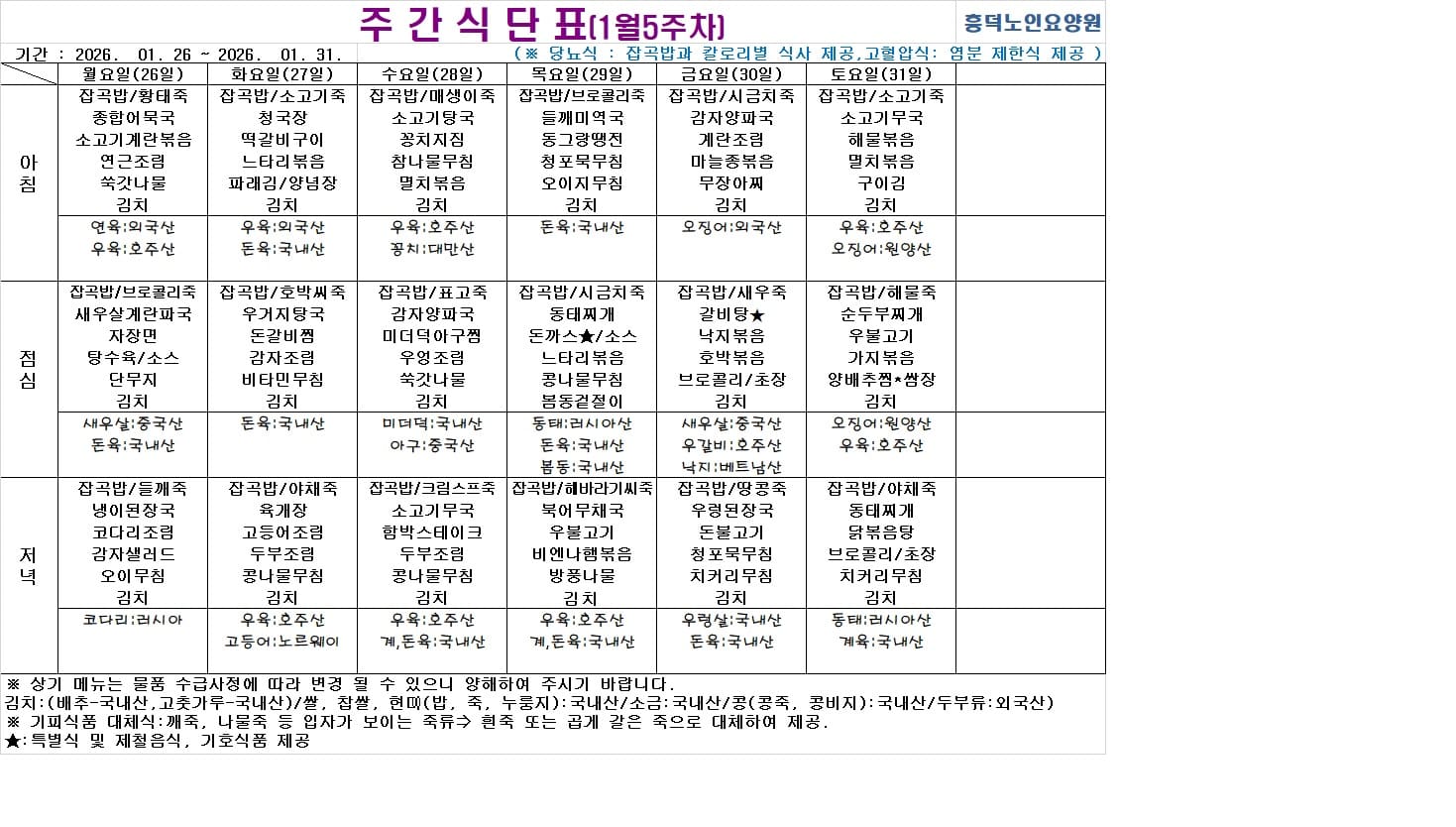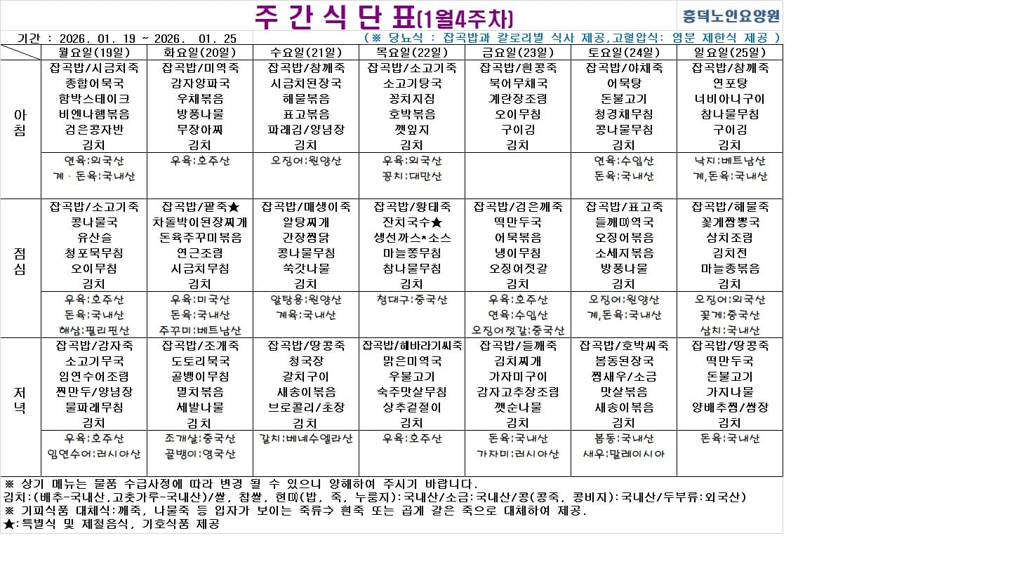 2026³â 01¿ù ½Ä´ÜÇ¥ ÀÔ´Ï´Ù.