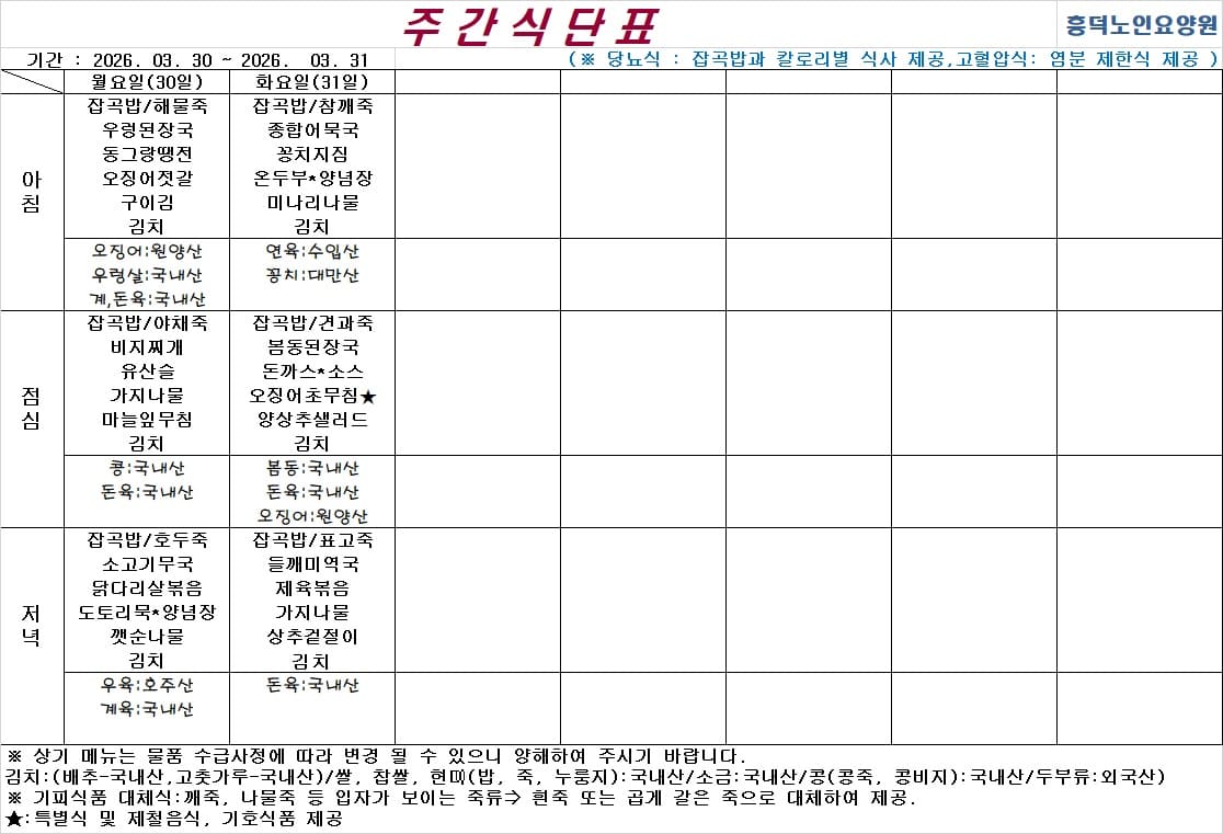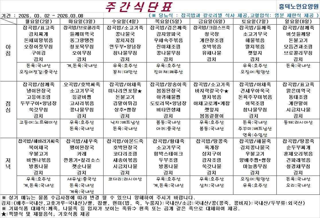 2026³â 03¿ù ½Ä´ÜÇ¥ ÀÔ´Ï´Ù.