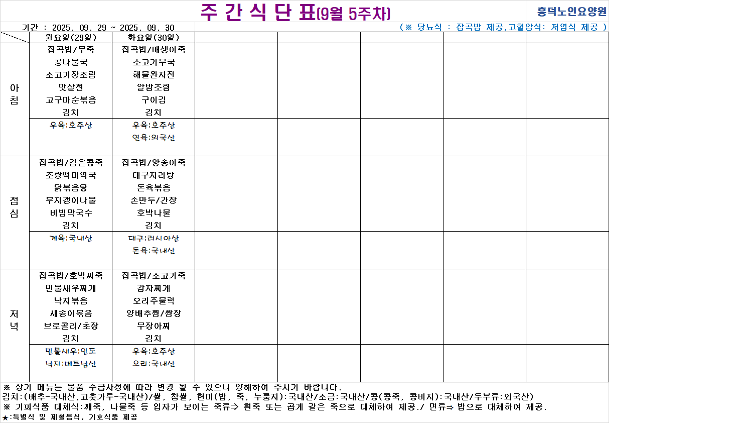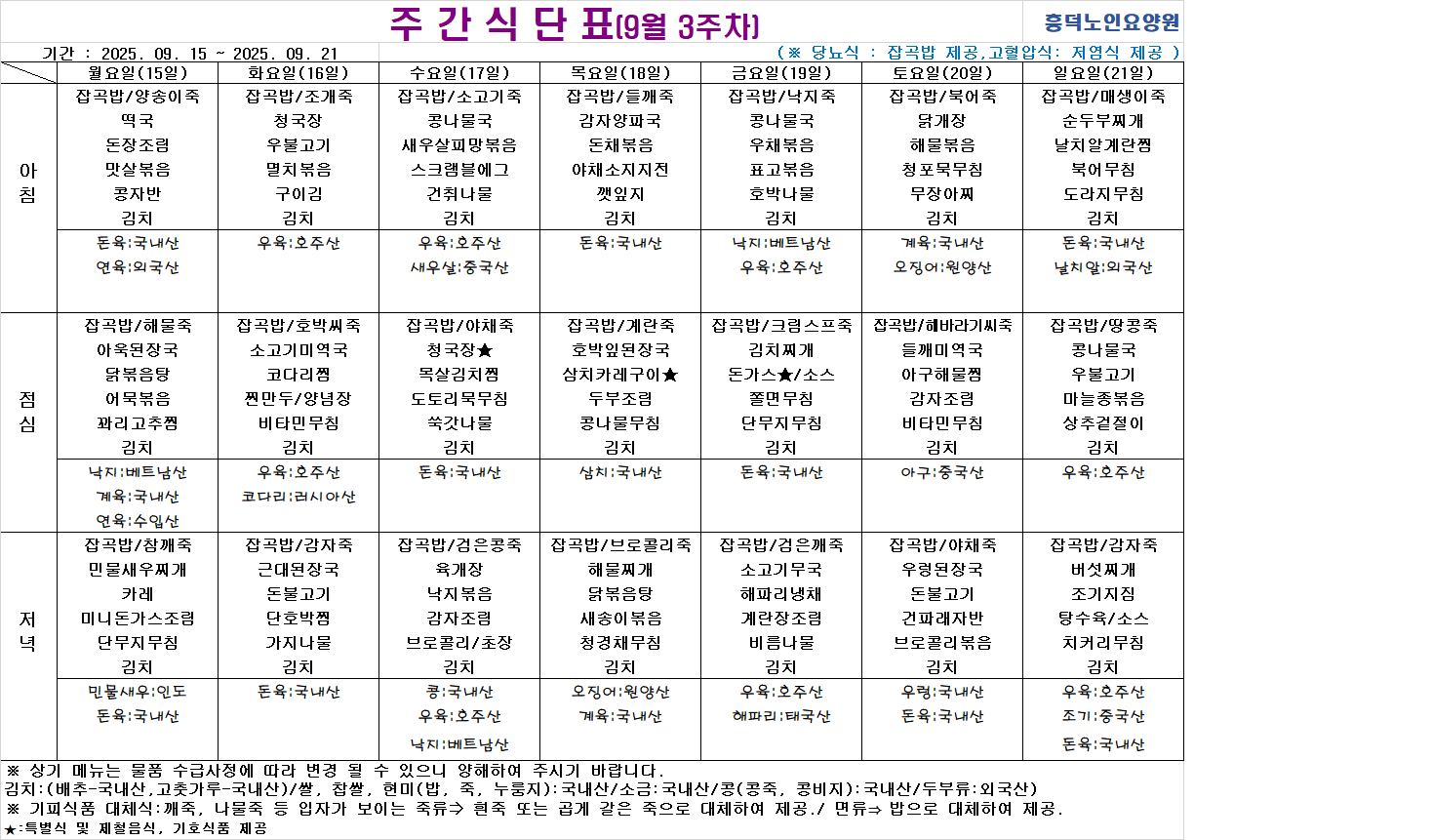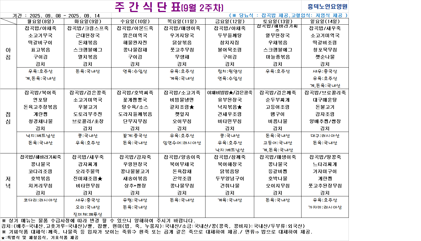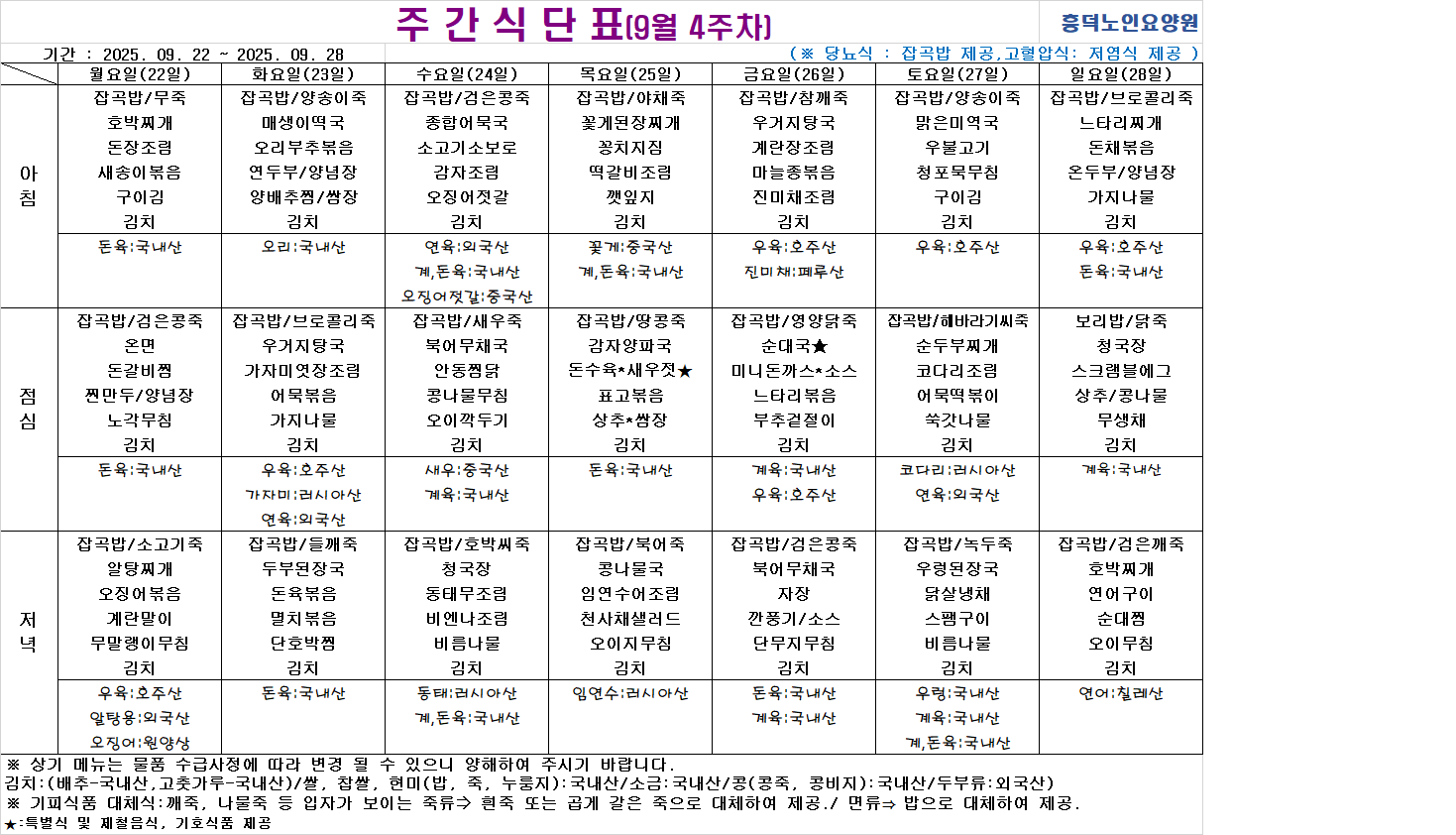 2025³â 9¿ù ½Ä´ÜÇ¥ÀÔ´Ï´Ù.