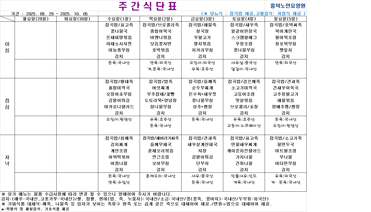 2025³â 10¿ù ½Ä´ÜÇ¥ÀÔ´Ï´Ù.